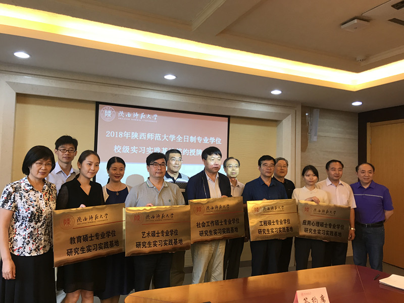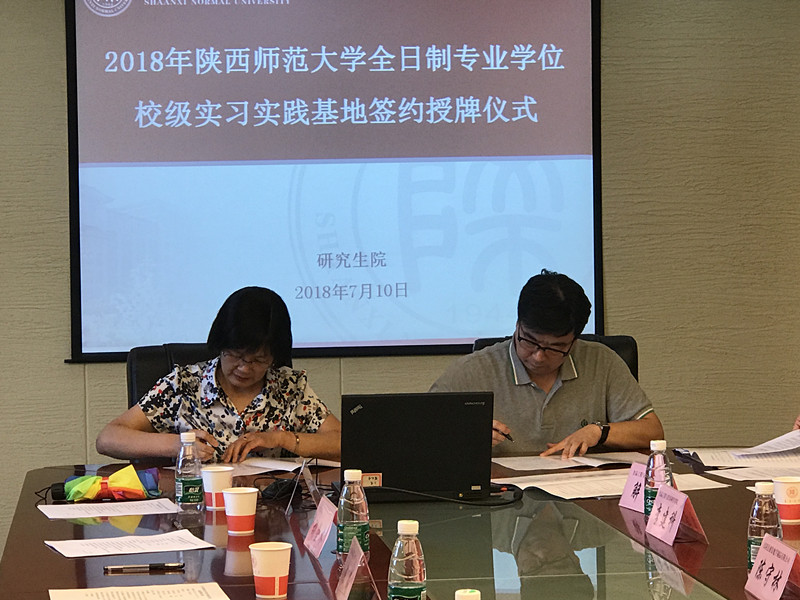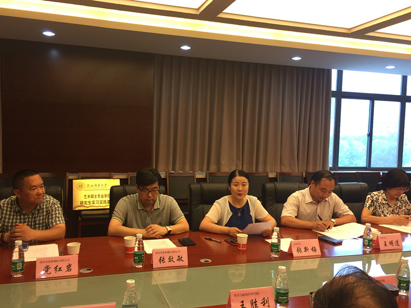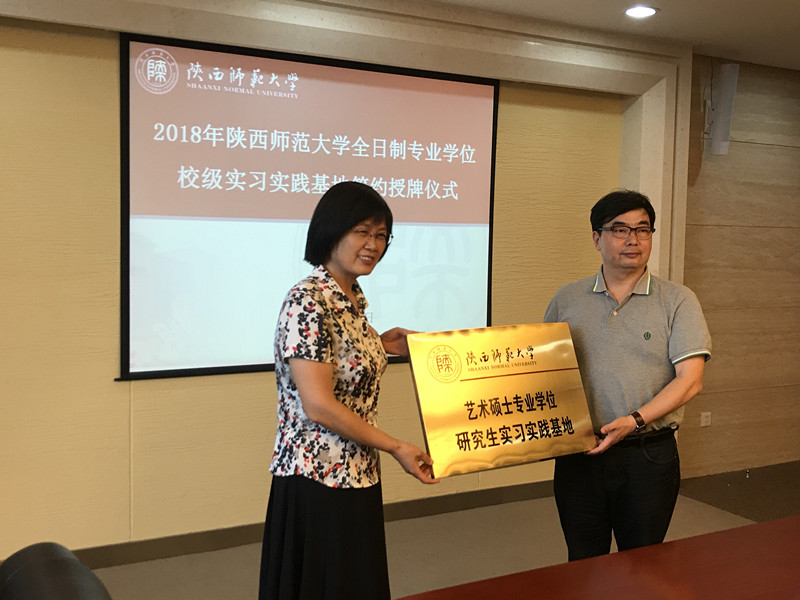 2018年7月10日下午,全讯白菜官网张新梅副院长、科研秘书石黎明和陕西省歌舞剧院院长张效敏、陕西省歌舞剧院民乐团团长党红岩一同参加了在7003全讯入口登录文汇楼会议室举行的全日制专业学位硕士研究生校级实习实践基地签约授牌仪式。仪式由研究生院副院长王明道主持,研究生院院长郑海荣、副院长韩胜伟出席。此次我校共有5个培养单位参加授牌。韩胜伟副院长首先宣读《7003全讯入口登录全日制专业学位硕士研究生校级实习实践基地的通知文件》,郑海荣院长与各基地负责人进行签约并合影留念。