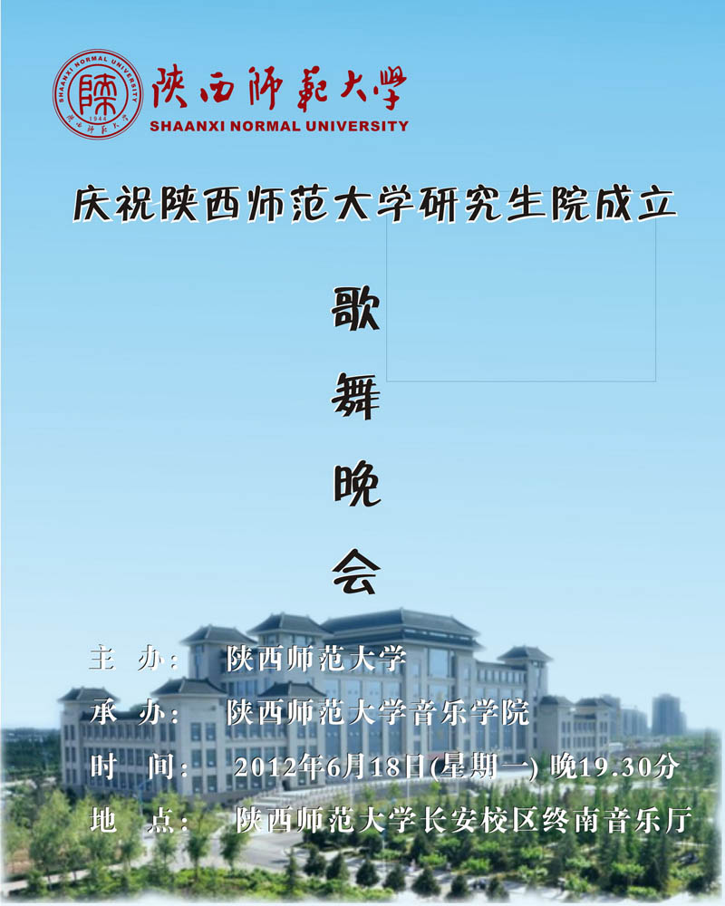 为庆祝7003全讯入口登录研究生院成立,将于2012年6月18日(星期一)19:30举办歌舞晚会,欢迎广大师生光临指导。地点:7003全讯入口登录终南音乐厅