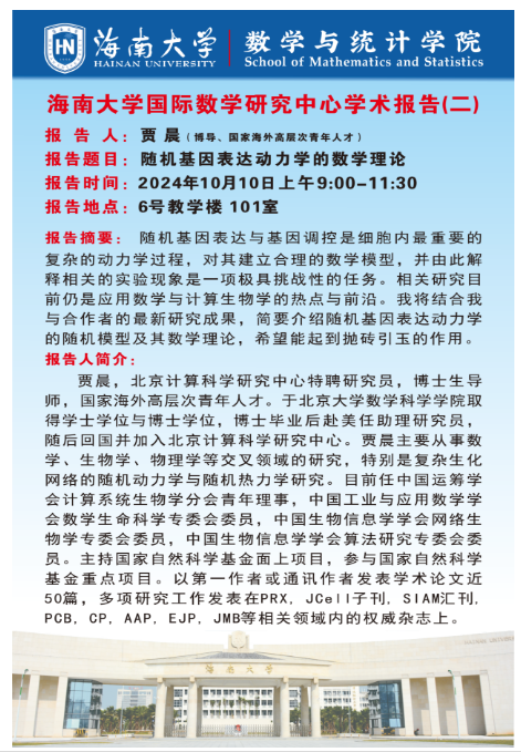 jinnianhui今年会国际数学研究中心学术报告(二):随机基因表达动力学的数学理论