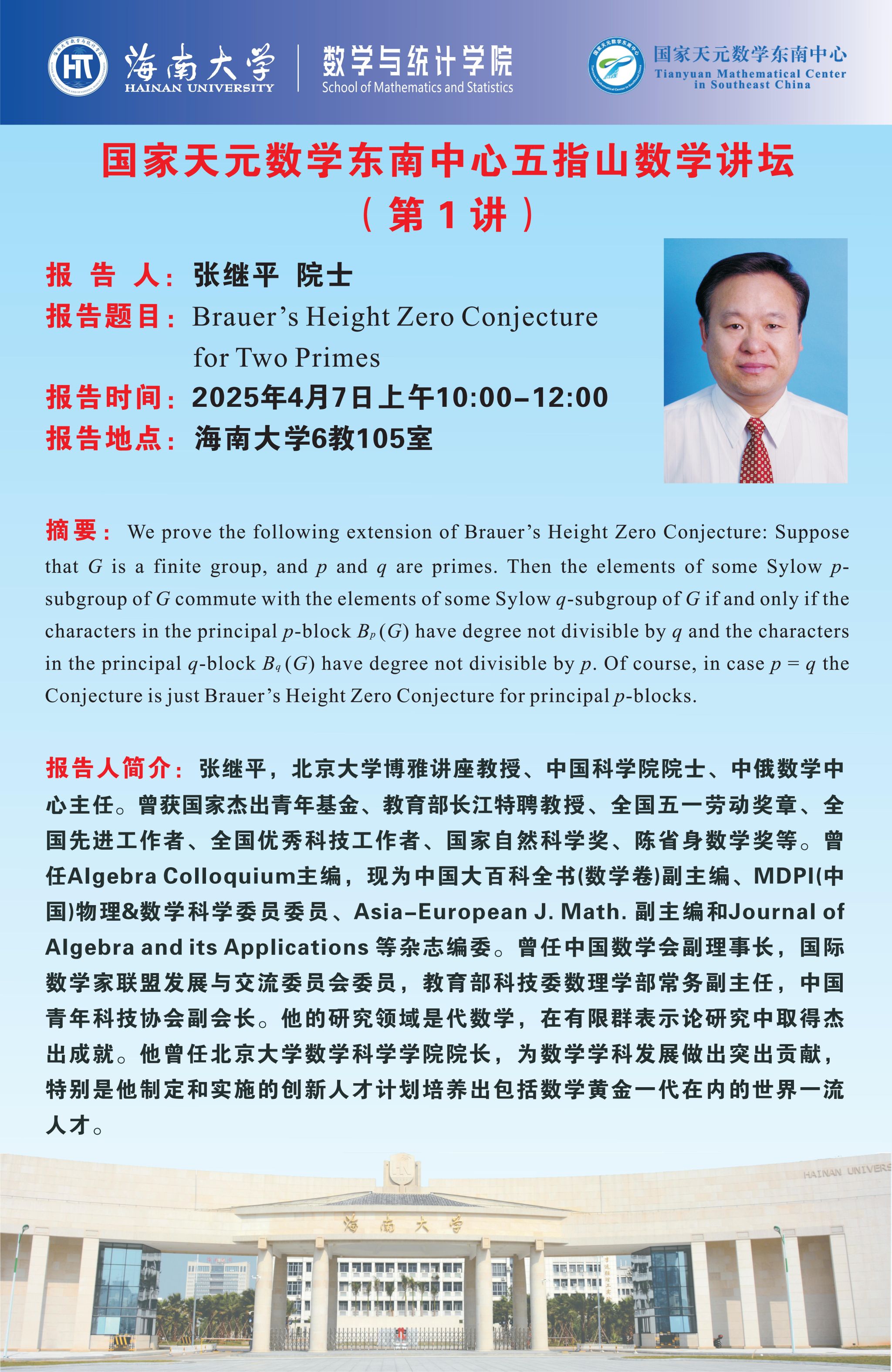 国家天元数学东南中心五指山数学讲坛(第1讲)